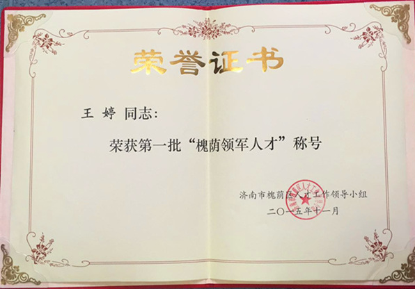 2015年12月10日,第一批“槐蔭領軍人才”命名及表彰會議在槐蔭政務中心隆重舉行。槐蔭區委副書記、區長國承彥等領導出席會議,我院王婷副院長榮獲首批“槐蔭領軍人才”榮譽稱號。