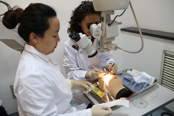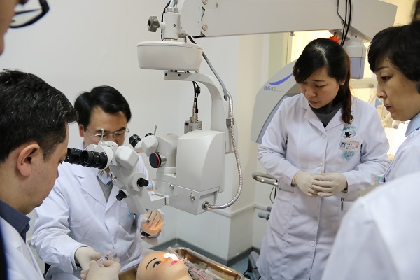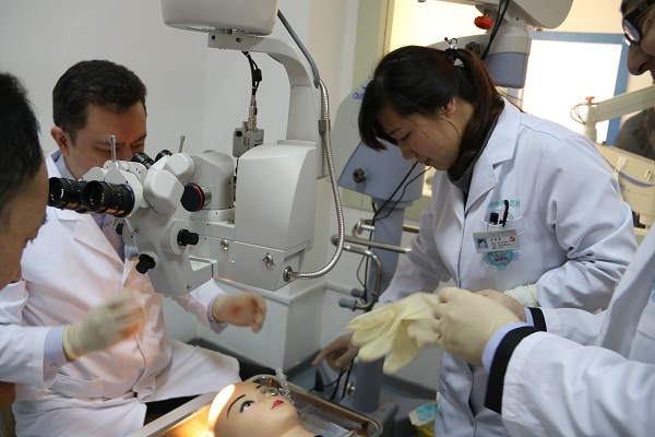 李素霞副主任醫師指導學員進行角膜移植操作