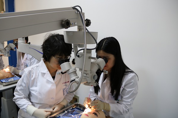 此次培訓作為我國首個角膜移植手術醫師培訓基地的第七次培訓班,凝聚了教授團隊的心血與汗水。在理論學習過程中,采用集中授課、分組討論的方式,由專家指導小組對角膜移植相關理論知識、手術技能進行詳細講解,并向學員展示了相關手術錄像。在臨床實踐技能培訓過程中,采用人工前房聯合豬角膜模擬人眼角膜模型,高清手術顯微鏡下同步示教訓練的方式,本次培訓以常規部分板層角膜移植培訓為主,每人可完成5-8例角膜移植操作。