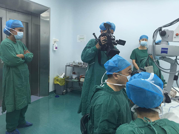 Under the guidance of the staff of Shandong Eye Hospital, several members of the interviewing group were allowed to enter the operating room after the disinfection and other procedures to shoot the cornea transplant surgery with tissue engineering cornea by president SHI. The excellent surgical techniques amazed the CBS reporter, who had conduced medical interviews for many years. “Watching the surgery by president SHI is just like watching a wonderful performance.” She praised again and again.