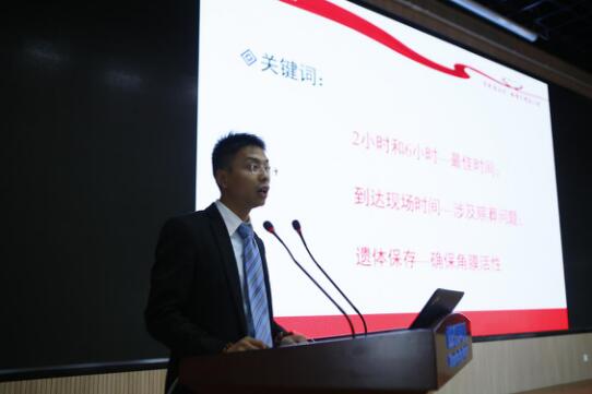 山東省紅十字眼庫工作人員張鏡宇介紹角膜捐獻接收流程