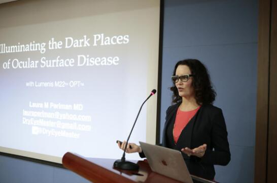 The title of the lecture is Illuminating the Dark Places of Ocular Surface Disease. Dr. Laura Periman first explained the TFOS DEWSⅡin detail, and then introduced the leading treatment methods and advanced equipment for the treatment of xerophthalmia. The clinicians who have listened to the lecture said they have benefited a lot from it.