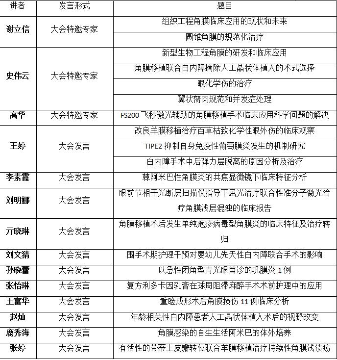 山東省眼科醫院有近20位教授和醫師受邀參加并會并做專題講座或發言。謝立信院士在全體大會上做了題為《組織工程角膜臨床應用的現狀和未來》的專題講座,謝院士的風采與精彩的講座內容贏得了現場專家與參會代表的贊許。史偉云教授為全國眼科醫生帶來了《新型生物工程角膜的研發和臨床應用》、《眼化學傷的治療》、《角膜移植聯合白內障摘除人工晶狀體植入的術式選擇》等多次精彩的專題講座,同時作為中國四位頂尖眼科專家之一參加了中印眼科論壇。高華教授做了題為《FS200飛秒激光輔助的角膜移植手術臨床應用科學問題的解決》的專家講座,并與史偉云教授一起作為嘉賓參加了“名人面對面”-青光眼與角膜專家討論會。王婷教授做了《改良羊膜移植治療百草枯致化學性眼外傷的臨床觀察》等精彩發言,并參與了白內障單元辯論賽。王富華副主任醫師、李素霞副主任醫師、劉明娜副主任醫師、亓曉琳副主任醫師、鹿秀海副主任技師等參會專家均以精彩的發言贏得了參會人員的廣泛關注。