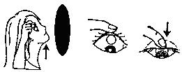 方法一:手持一面小鏡,對著鏡子轉動眼球,認真尋找鏡片位于何處,必要時可拉開上下瞼尋找,發現鏡片后眼睛注視與鏡片位置相反的方向,利用眼瞼阻止鏡片滑動,然后眼睛逐漸向正前方轉動,促使鏡片回到角膜上(見圖1)。