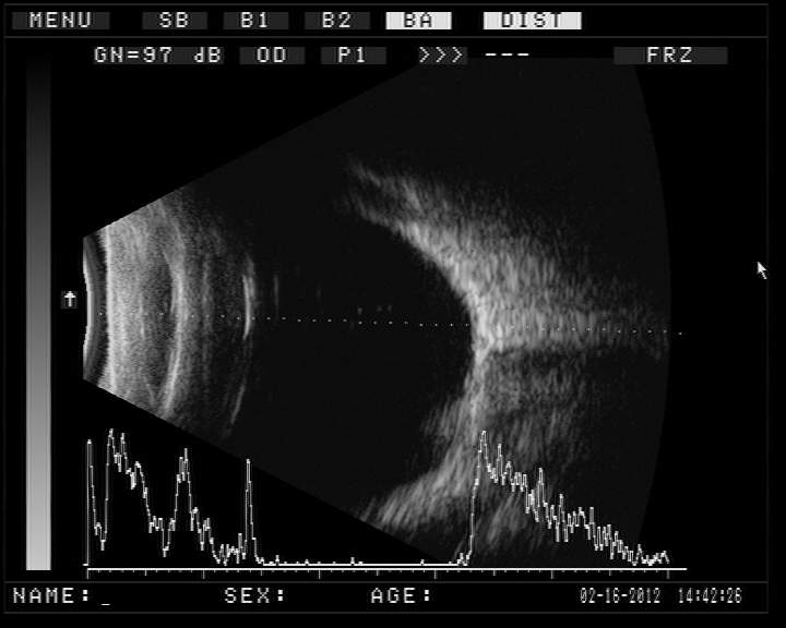 UBM提示:右眼晶體向顳上偏移,左眼因晶體脫位明顯所以沒有做UBM檢查。??