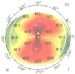 地形圖:右眼 ?41.3@8 / 46.8@98????????????左眼 ?41.1@174 / 46.8@84??(和電腦驗光的散光度數相對應)
