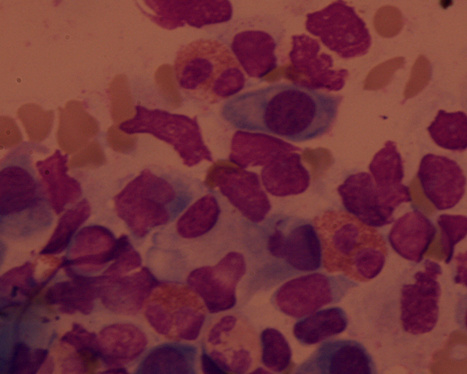 取得結膜刮片后將結膜刮片標本置于載玻片上,經固定后進行瑞氏(Wright)法染色,顯微鏡下觀察細胞學的變化,主要檢查的細胞為各種炎性細胞和結膜上皮細胞。對其進行脫落細胞學分類。過敏性結膜炎約半數患者可發現變性的上皮細胞及嗜酸性粒細胞。