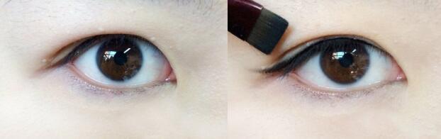 醫生解析:只有低垂雙眼時才能看到重瞼的皺褶,顯得上瞼臃腫,總給人刻意瞪眼的感覺。即使畫寬眼線,仍不靈動。