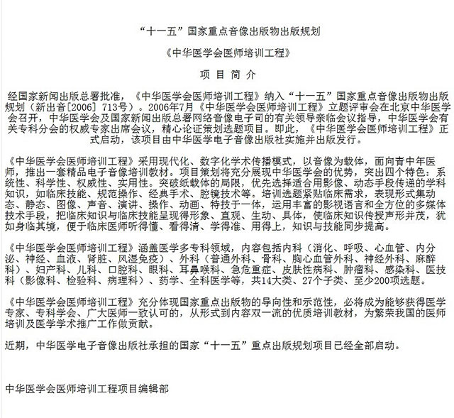 由我院史偉云教授、高華副教授主編的中華醫學會議時培訓工程教學系列光盤《常用眼表手術》教學光盤近日由中華音像出版社全新發行。