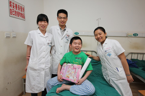 ????上午9點,醫務部組織各病區護士長及管床醫師一一為孩子們分發了禮品,親切的慰問每一個小患者,并祝愿他們早日康復。孩子們手捧禮物個個樂開了懷,仿佛忘記了病痛,忘記了自己是在醫院,病房里傳來一片片歡聲笑語……!???