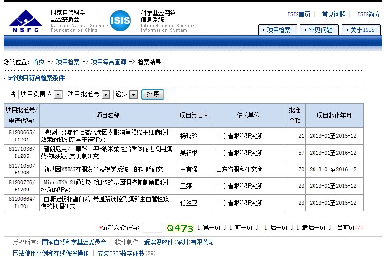 根據國家自然科學基金委最新公布的評審結果,我所(院)2012年度國家自然科學基金項目共獲批5項,目前我所院在研國家自然科學基金上升至13項。