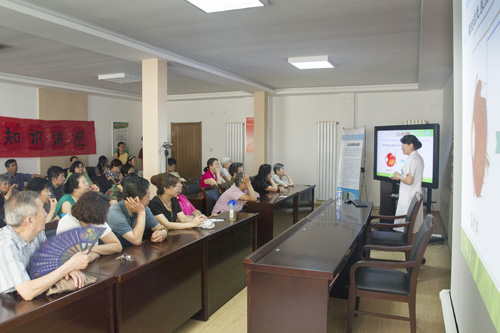 ????6月4日和5日我院以白內障科的張輝大夫為核心的志愿者團隊來到公祥街社區居委會和濟柴社區居委會舉辦以白內障為主題的眼科知識講座,有近百位居民參加。講座結束后,我院的志愿者為居民朋友們送去視力表、眼科常識手冊、眼鏡布及精美紀念品一份,受到了居民朋友的一致好評。??