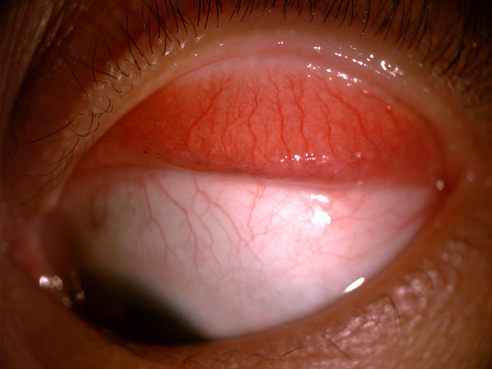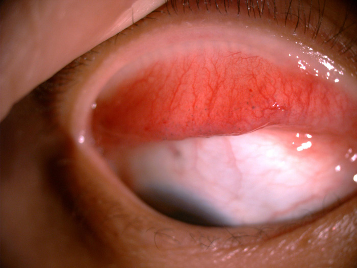 ??? 最近,我院來了一位30歲的年輕女士,眼部發紅,經我院眼科專家王婷院長診治后,確診為接觸性結膜炎,并伴有明顯的色斑積淀(如圖),究其原因竟然是由佩戴美瞳引起的。佩戴美瞳到底有沒有危害,需要注意一些什么,為了解決愛美女士的困擾,我們搜集了一些這方面的資料,希望能對大家有所幫助。?