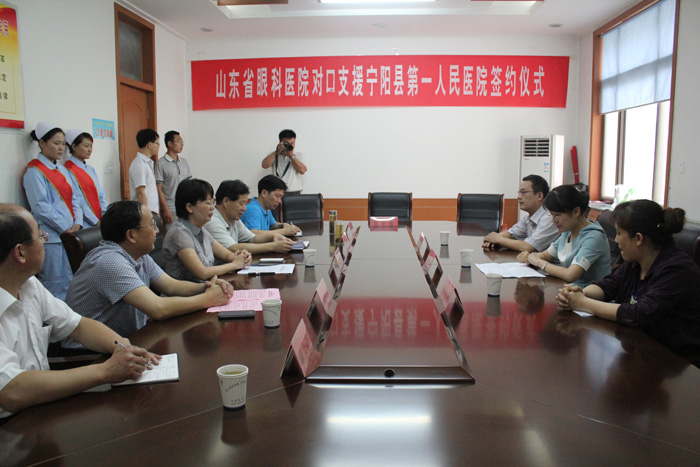 2013年7月17日上午,我院王婷副院長,醫務部張怡琳主任遠赴泰安市寧陽縣,與寧陽縣第一人民醫院簽訂對口支援幫扶協議,并舉行了專家會診活動。寧陽縣衛生方面分管縣長,寧陽縣衛生局局長,寧陽縣第一人民醫院的相關領導出席了幫扶協議簽訂儀式。我院王婷院長、寧陽縣衛生局吳局長、寧陽縣第一人民醫院寧院長三方簽訂了對口支援幫扶協議書;由寧陽縣柳桂敏副縣長與我院王婷院長進行了揭牌儀式。??