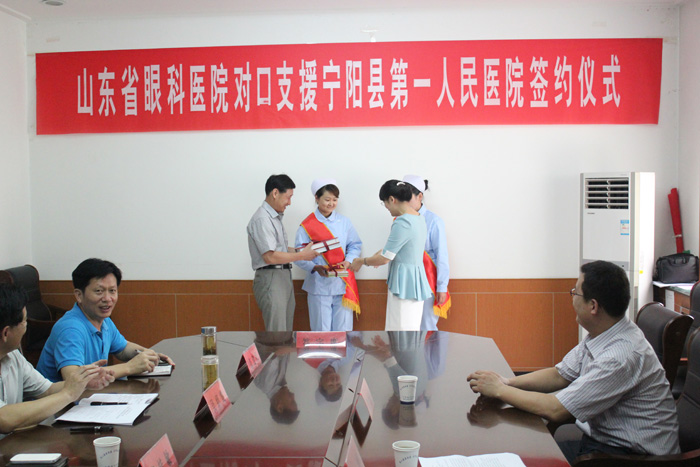 ??? 我院王婷院長受邀發表了重要講話,她表示下一階段對口支援的工作重點是做好需求調研,有的放矢、分階段對寧陽縣第一人民醫院進行幫扶,期望雙方通過三年的努力,使寧陽縣第一人民醫院的醫療技術水平尤其是眼科救治水平得到有效提升。??