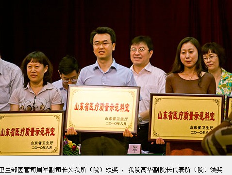 ????多年來,我院在省眼科研究所的正確領導和指導下,不斷深入貫徹落實醫院管理年和“兩好一滿意”活動,不斷強化醫療質量管理,提升醫院醫療服務水平,并探索實施醫療質量持續改進的長效機制;特別是在省衛生廳《關于在全省范圍內開展醫療質量示范科室創建活動的通知》(魯衛醫字〔2009〕20號)下發以來,我院按照示范科室創建標準,精心組織、積極實施、逐條落實、認真整改,取得了顯著效果。經專家組檢查、評議,我院龍頭科室——角膜病科被評選為首批“山東省醫療質量示范科室”。?