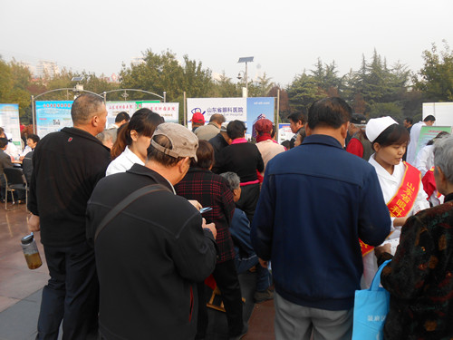 為充分展現山東省眼科醫院在“科研、醫療、防治、教育”等各項工作中發揮的巨大作用,我院此次特派出一支由兩名眼科專家、四名醫護醫技人員、三名服務人員組成的九人志愿者團隊,攜帶手持裂隙燈、醫學驗光儀,眼鏡清洗儀以及大量眼科常見病的科普常識手冊和家用視力表前往活動地點。