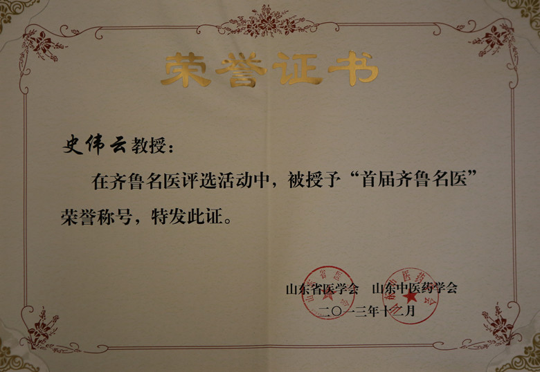 近日,在山東省醫學會主辦的齊魯名醫評選活動中,我院院長史偉云教授成功當選為“首屆齊魯名醫”。