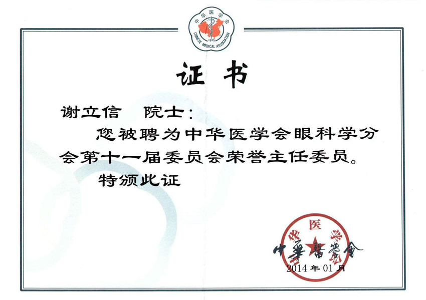 謝立信院士是山東省醫學科學院名譽院長、山東省科協副主席、山東省眼科研究所所長、青島眼科醫院院長,兼任中華醫學會和中國醫師協會眼科學分會副主任委員、亞洲角膜學會副主席、國際眼表疾病學會理事、國際淚膜與眼表學會學術委員會委員和亞太接觸鏡眼科醫師協會理事等,是目前我國眼科學界唯一的中國工程院院士,我國角膜病專業的領軍者。