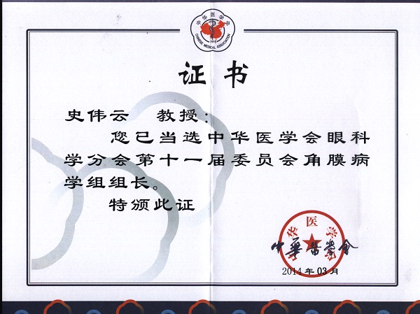 史偉云教授為山東省眼科研究所黨委書記、副所長、山東省眼科醫院院長,任中華醫學會眼科學分會角膜病學組組長,是中華醫學會眼科學分會首批12位專家會員之一,“泰山學者”角膜病專業特聘專家,山東省醫學領軍人才、山東省有突出貢獻的中青年專家,《中華眼科雜志》副主編,《中華眼視光學與視覺科學雜志》、《臨床眼科雜志》編委。