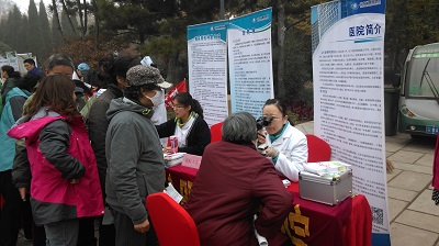 2014年11月16日上午槐蔭區衛生局組織的冬季傳染病防治和慢病防治義診宣傳活動在濟南森林公園廣場隆重舉行,早上9點左右活動開始,伴隨蒙蒙的霧氣和烈烈寒風,晨練的市民陸續來到活動現場。
