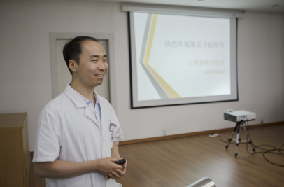 山東省眼科醫院眼底病科主任原公強參加我院的醫師節活動,他有感而發,與會者一起分享他工作歷程的經驗和成果。副院長王婷表示醫生是一個高尚的職業,希望通過舉辦本次活動,增強醫生的職業榮譽感和幸福感,同時希望醫生們樹立正確的職業追求和夢想,精誠合作,加強學科建設,提升技術水平,為更多患者解除病痛。