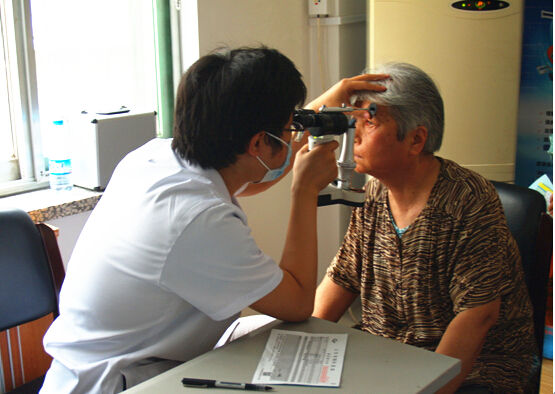 曾繁星大夫為群眾進行眼部檢查