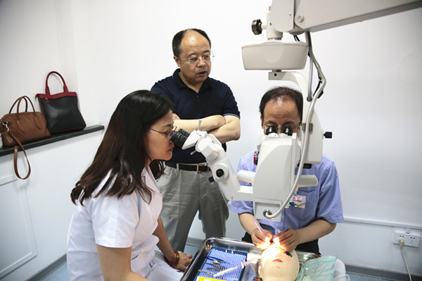 史偉云教授對首批學員進行生物工程角膜移植示范操作