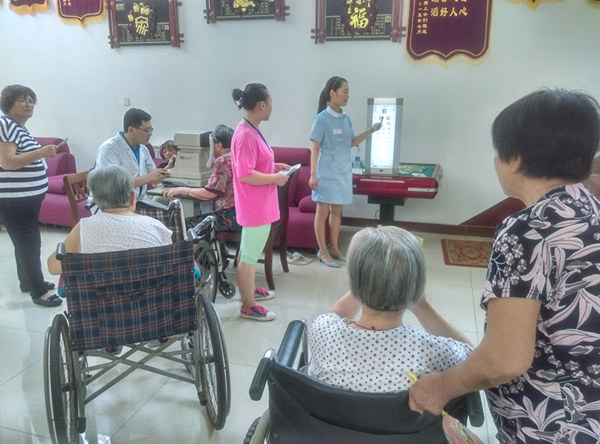 山東省眼科醫院的基層義診活動扎根于社區,而不拘泥于社區義診的單一形式。在圓滿完成對礦院路社區義診之后,院領導指示,山東省眼科醫院義診分隊將本周的義診重點放在老年公寓和福利院等社會公益組織。在2015年7月29日,山東省眼科醫院義診小分隊來到了位于重騎集團內的濟南市舒心港灣老年公寓(暨重騎頤養老年中心)為在此療養的老人進行眼科義診。舒心港灣老年公寓是濟南市規模較大的療養中心之一,在此生活的老人心態非常好。