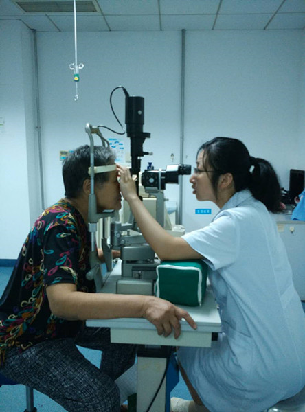 山東省眼科醫院白內障科孫吉君醫師為老人進行術后檢查