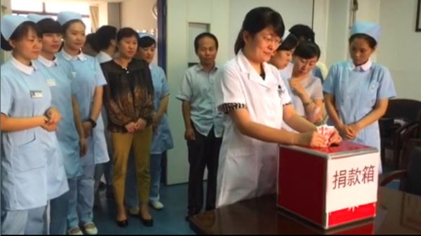 9月17日上午,在山東省眼科醫院7樓會議室,舉行了為小全全捐款的儀式,全院職工利用空余時間趕來捐款,并且為小全全寫下了祝福語。王婷副院長特別叮囑工作人員,一定要為小全全一家辦理一張醫院的餐卡,這樣飲食的質量就能得到保障,有利于小全全的康復。