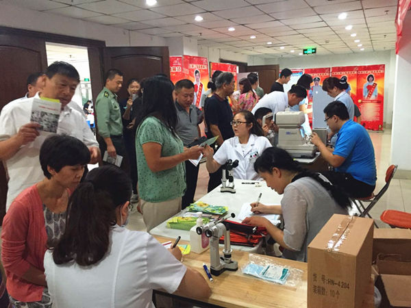 山東省眼科醫院王欣醫師為槐蔭區政府工作人員進行眼部檢查