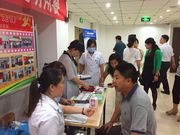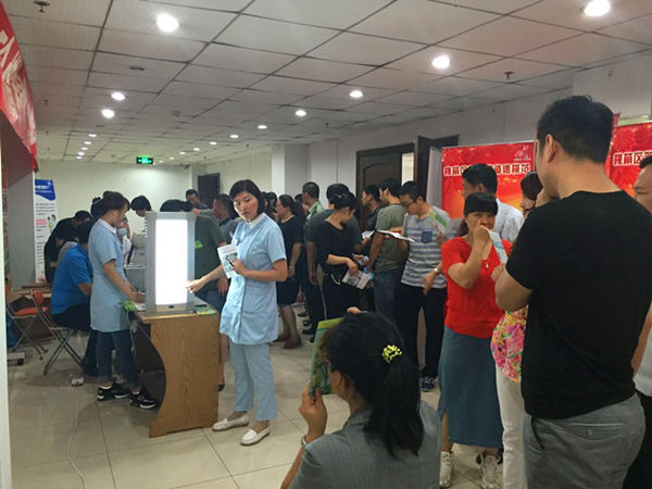 近年來,隨著電子產品的普及,視覺健康已成為影響青年人綜合健康的突出問題。為提高青年職工對視覺健康的關注程度,使越來越多的青年人擁有健康明亮的眼睛,山東省眼科醫院聯合槐蔭區青年聯合會開展了“光明與責任同行——關注視覺健康公益行動”。槐蔭區政府作為本次活動的第一站,山東省眼科醫院義診分隊于9月21日——9月23日進駐槐蔭區政府,利用工作人員午餐時間進行義診。三天時間,共為近500人進行了初步眼科檢查,義診發現,屈光不正、白內障等眼科疾病在機關工作人員中廣泛存在。義診每日,山東省眼科醫院均派出由兩名醫生,兩名護士,及驗光師組成的義診團隊,盡最大努力為青聯委員單位提供最高質量的義診服務。在義診現場,山東省眼科醫院的醫護人員為槐蔭區政府工作人員發放了愛眼護眼手冊、視力表、擦鏡布、水杯等紀念品,醫護人員的認真負責與義診活動的靈活多樣,得到了槐蔭區政府工作人員的一致夸贊。