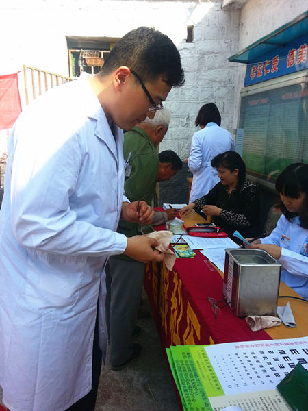 10月16日一早,山東省眼科醫院義診分隊就驅車前往西山村,在村民活動室迅速調試好設備,為村民展開醫學驗光、裂隙燈檢查。前來參加義診的大部分是老年人,因為不注意用眼衛生或患有眼疾但是沒有及時進行治療等原因,很多老人被檢出眼部疾病,義診現場,山東省眼科醫院的亓曉琳博士與李光偉醫師耐心的對患者進行了病因講解與治療方法的解答,并對村民關于眼部疾病的誤區進行了知識普及,亓曉琳博士說:“很多村民在收栗子、核桃時眼部受傷,應該及時檢查并采取相應措施,以免造成更嚴重的后果,建議村民佩戴護目鏡;有些老人對白內障還存在著眾多誤區,藥物是無法治愈白內障的,目前唯一的方法是通過手術治療,并且山東省眼科醫院針對貧困村的實際情況,對村民制訂了相應的幫扶政策,具體政策為使用國產晶體,免除全部費用,使用進口晶體,僅收取1000元。”