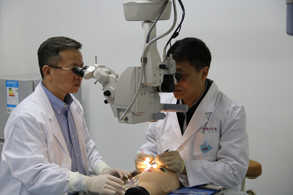 高華教授對專家學員進行生物工程角膜移植示范操作