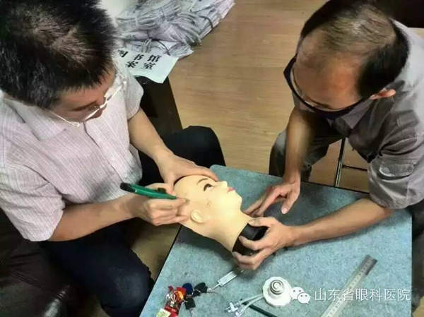 山東省眼科醫院后勤部張林海主任與劉傳寶組長對角膜移植模型進行設計