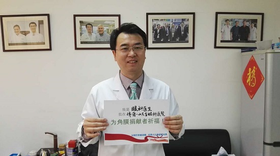 中華醫學會眼科學分會角膜病學組委員、山東省眼科醫院副院長高華教授為角膜捐獻者祈福