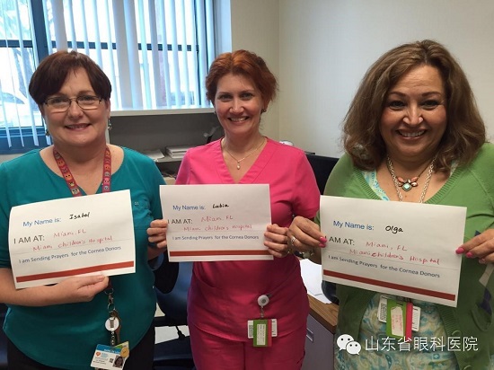 美國邁阿密兒童醫院醫護人員為角膜捐獻者祈福