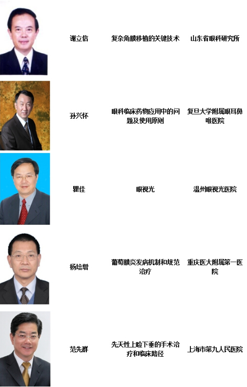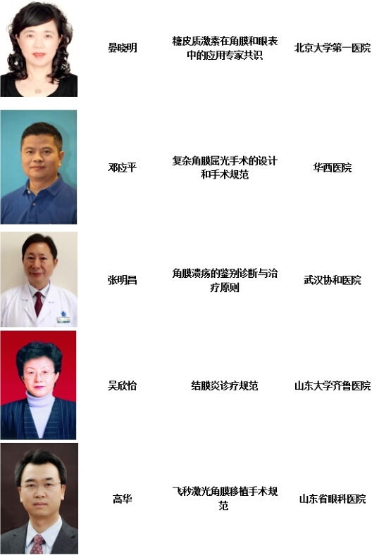 ?本次會議內容主要分為兩部分:一、會議邀請謝立信院士、孫興懷教授、瞿佳教授、楊培增教授、范先群教授、趙明威教授、史偉云教授、畢宏生教授、戴虹教授、湯欣教授、魏文斌教授、李朝輝教授、顏華教授、陳有信教授、盧奕教授、張虹教授、原慧萍教授、楊柳教授、李冬梅教授、葉娟教授、管懷進教授、吳明星教授、潘志強教授、洪晶教授、黃一飛教授、徐建江教授、黃挺教授、陳蔚教授、李瑩教授、王雁教授、宴曉明教授、鄧應平教授、張明昌教授、吳欣怡教授、高華教授、王婷副教授等知名眼科專家進行授課。全省眼科臨床專業質量控制培訓會內容以角膜與眼表疾病、白內障、眼底病為主,其他專業青光眼、葡萄膜疾病、眼整形等也將進行深入講解和交流;二、由中華醫學會眼科學分會角膜病學組組長單位和山東省眼科臨床專業質控中心舉辦的全國角膜病繼續教育培訓班將繼續進行。