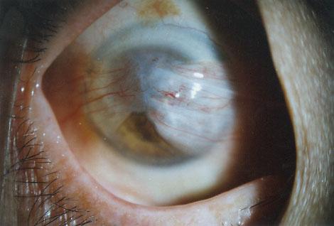 翼狀胬肉的臨床表現會隨著患者病情進展而不同。翼狀胬肉的分期為早期、中期和晚期。早期患者可能沒有任何感覺,只是在照鏡子時看見角膜周邊長入“肉肉”,由于患者主觀和客觀上并沒有感覺到很大的異常,對此類情況也不會很在意。等翼狀胬肉侵犯角膜時,病程進展到中期患者會有異物感,也就是俗話說的“磨得慌”,患者會覺得視物模糊、視物易疲勞等一些癥狀。晚期時(下圖2、3),當纖維結締組織侵入瞳孔時,就會自覺視力明顯下降,異物感明顯。患者此時會來醫院就診,延誤治療的最好時期。
