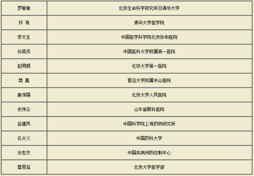 2016年第十七屆吳階平-保羅·楊森醫學藥學獎(吳楊獎)獲獎名單