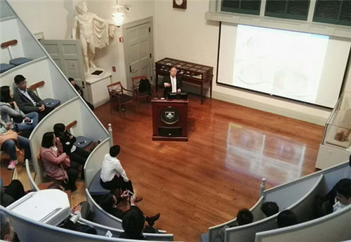 10月,史偉云教授受邀在世界頂尖學府向世界分享中國首創生物工程角膜臨床應用經驗。10月12日,山東省眼科研究所所長、山東省眼科醫院院長、中華醫學會眼科學分會角膜病學組組長史偉云教授,受美國哈佛大學和麻省總院的邀請,在哈佛大學以及著名的麻省總醫院(MGH)Bulfinch樓的EtherDome(“乙醚廳”)就生物工程角膜研發和臨床應用情況進行了演講。Ether?Dome座無虛席,來自世界各地的專家學者認真聽取了史偉云教授的報告,并積極就史偉云教授的報告進行了提問,史偉云教授對專家的提問進行了細致的回答。